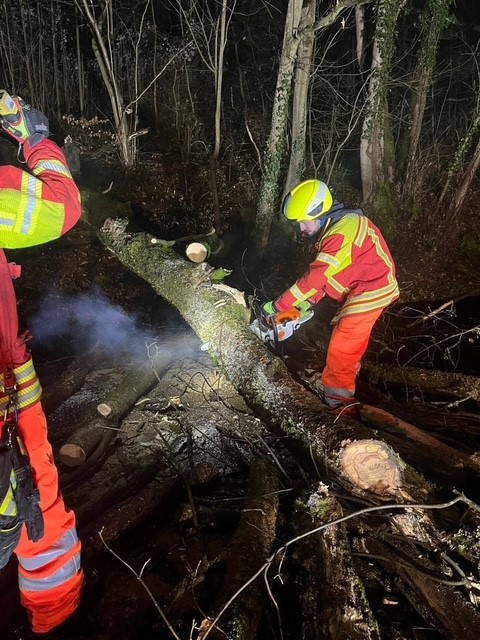 Vor Ort stellte sich heraus, dass ein Baum umstürzen zu drohte und dabei sowohl einen angrenzenden Radweg als auch ein benachbartes Grundstück gefährdete.